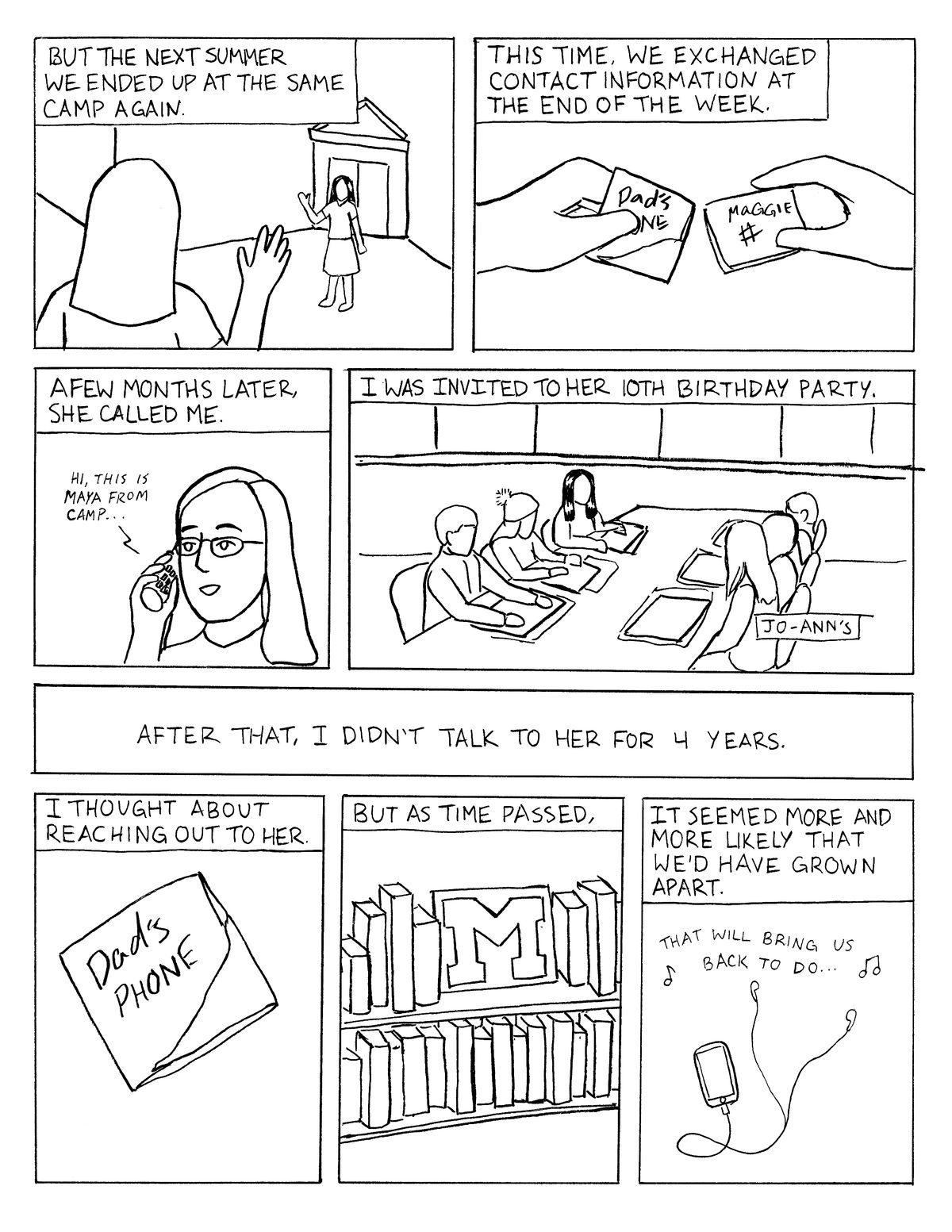This autobiographical comic tells the story of how I met (and lost touch with, and met again) my friend Maya.